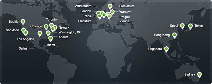 We run 23 data centers strategically located around the world. When you sign up for CloudFlare, we begin routing your traffic to the nearest data center.
